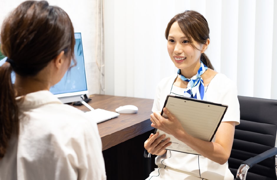 カウンセリングルームは全部で3室、ご記入いただきましたカウンセリングシートを元にヒアリングと当院の「クマ取り脱脂術」のご説明をさせていただきます。